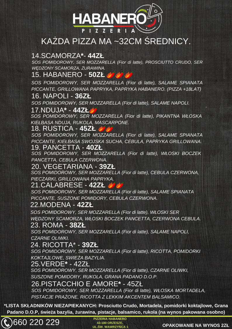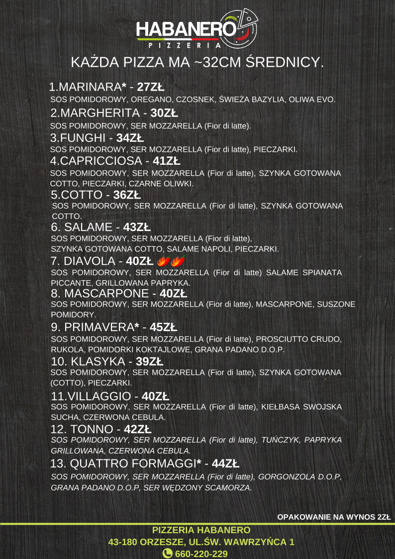 W HABANERO nie idziemy na skróty. Robimy pizzę, jak trzeba. U nas nie znajdziesz ketchupu, sera z wiaderka ani wędlin z promocji. Robimy klasyczną pizzę rzymską na długo dojrzewającym cieście z dużym nawodnieniem – cienką, lekką i chrupiącą. Wszystko na włoskich składnikach od sprawdzonych dostawców: fior di latte, pelati, salame Napoli, prosciutto crudo… Zero kombinowania, sama jakość. Dla tych, co naprawdę kochają pizzę.